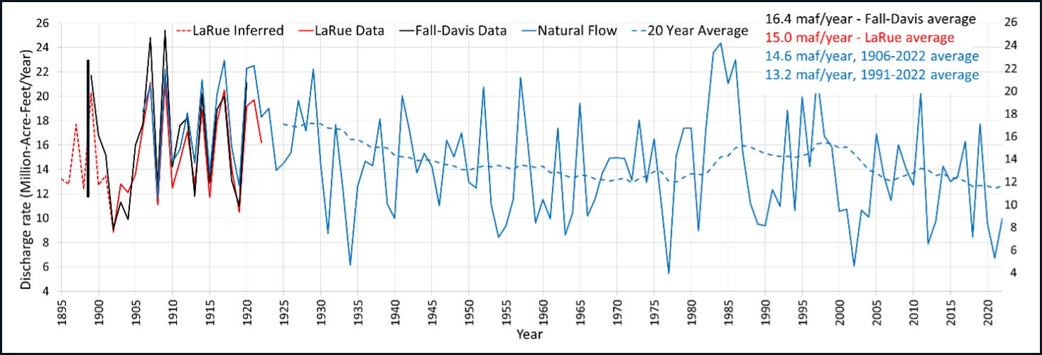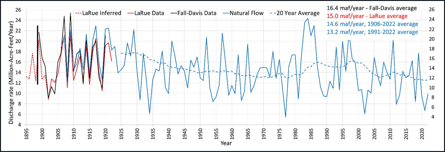 The data for the 15 years preceding the 15-year period used for the agreement showed a total water flow of only 13.5 million acre-feet, and the long-term average for the Colorado River is closer to 13.5 million acre-feet and is declining.