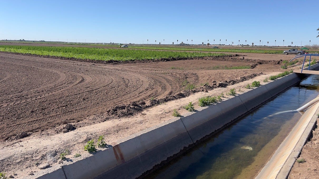 Once the plants are a few inches tall (after “thinning”), the sprinkler pipes are removed. Water is then sent down small trenches (furrows) between the rows of crops. The water comes from a network of open canals that start at the Colorado River, and water allocation is controlled by the local water districts. Growers siphon out water from the canal through movable pipes and send it down furrows.