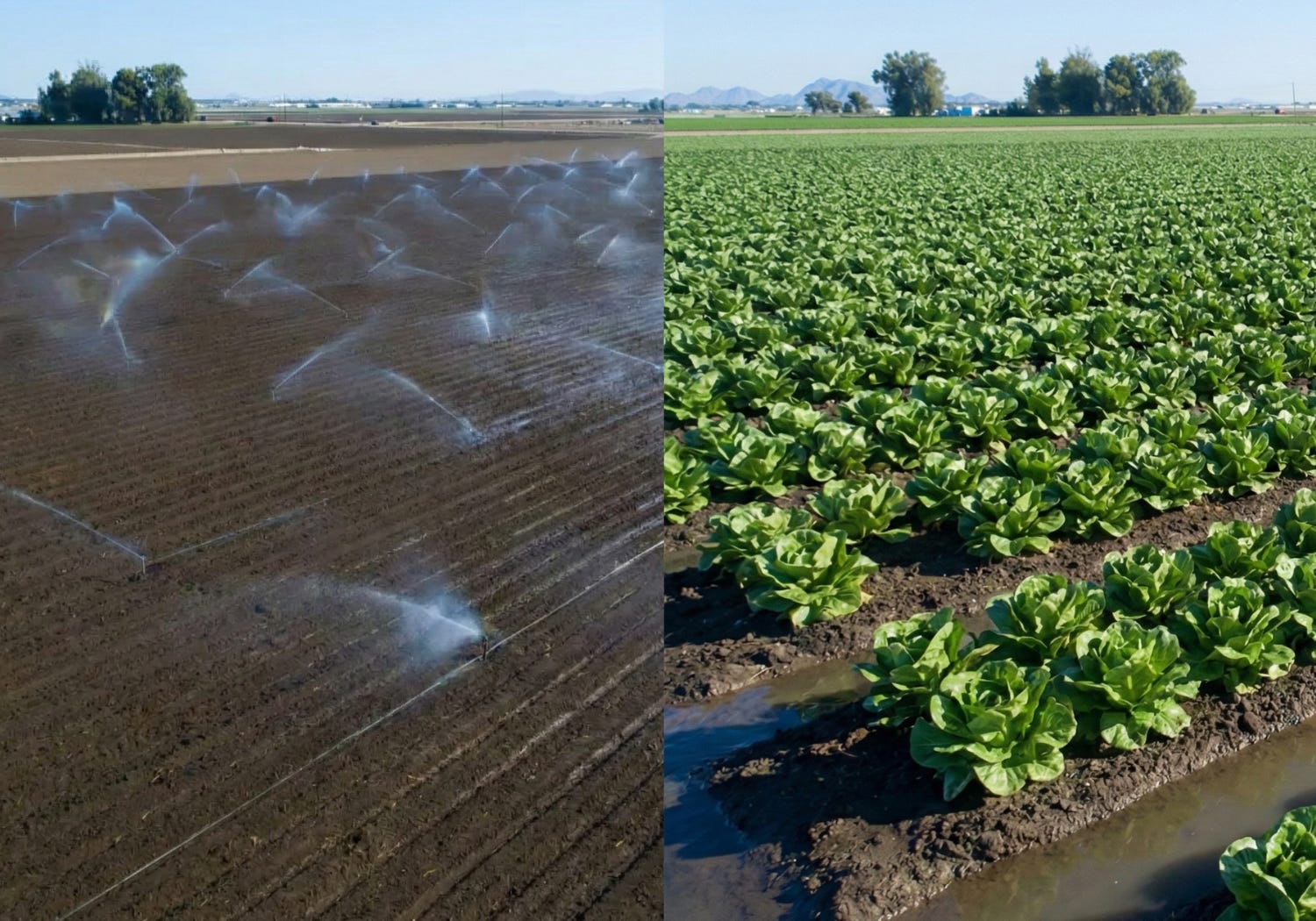 Coming back to irrigation, leafy green production (lettuce, spinach, kale) in Yuma uses a specific hybrid irrigation strategy that surprises many people because it relies heavily on “old school” flood irrigation methods that have been optimized with high-tech precision.