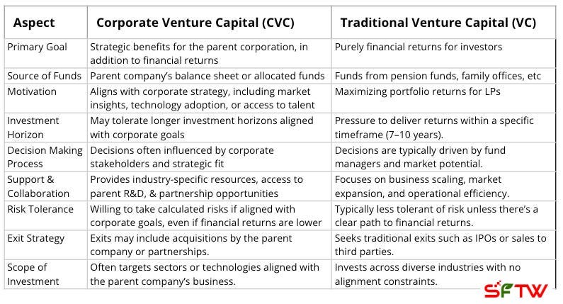 If I’m a VC or a CVC evaluating an investment in this space, how should I approach it? What specific considerations should I focus on? How do the decision-making criteria differ between traditional venture capital and corporate venture capital in this context?