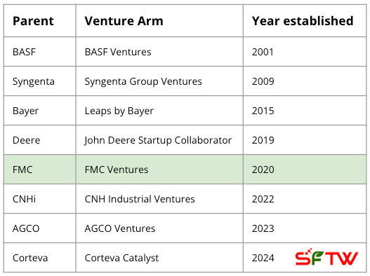 RP: When you look at the history of corporate VCs, the timeline tells a different story. FMC started its fund about five years ago, and Syngenta has been at it for 10 to 15 years. Meanwhile, the broader VC industry has existed for 50 years.